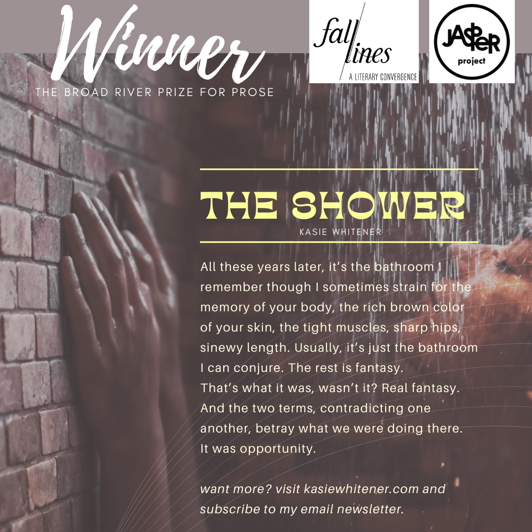 Yesterday, the Jasper Project announced my short story “The Shower” was the winner of the Broad River Prize for prose.